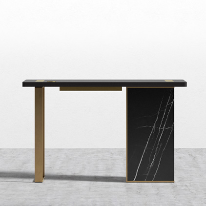 When figuring out what kind of office furniture you’ll need you’ll want to think about the size of your space and if you’ll have enough space to walk around your office desk and chair. If you don’t have as much space but still want to make a statement, opt for a compact version of a desk you like, like our Augustus Desk Compact in Black Marble with Walnut Veneer.