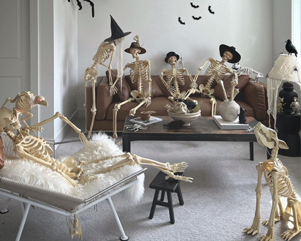 Wanting to go for a bolder Halloween look? Create a halloween themed vignette in your home by arranging a spooky scene on your coffee table or living room. Add a few skeletons, bats, witch hats, etc for friends and family to enjoy.