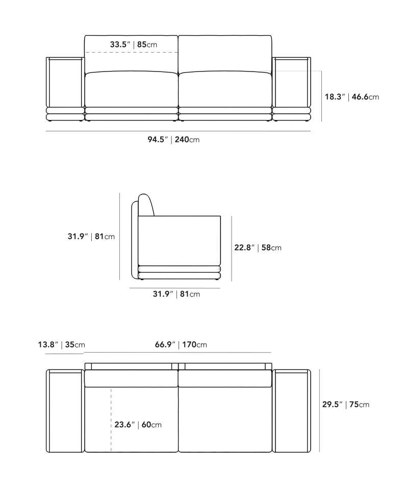 - Available as 2- or 3-seater sofas, sectionals, chaises and side table