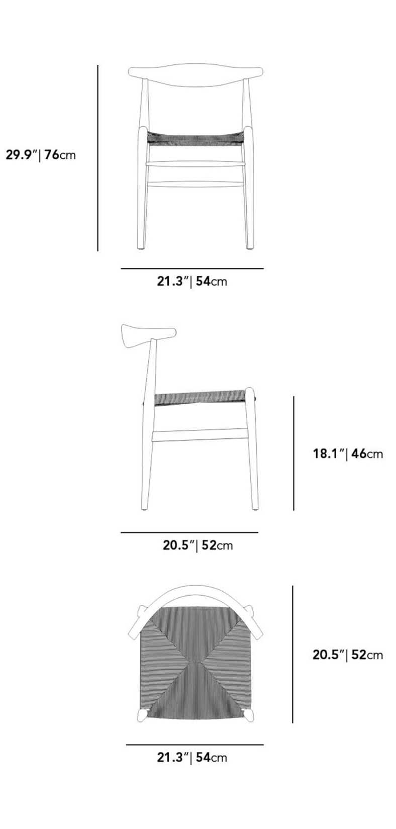 Originally designed in 1956, this classic piece of Danish furniture entered mass production due to its functional design fit for the modern home. Attractive for its non-ostentatious profile, every feature is made with intent including the perfect angle of the curved back, ergonomically designed for human comfort. The Elbow chair is an ideal dining chair complete with a natural, paper cord seat for increased comfort.