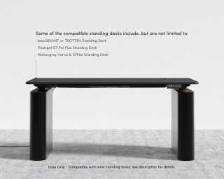 - Base is compatible with standing desks with motor leg dimensions under 10x10cm, motor leg base under 70x10cm, and a minimum leg height of 65cm.