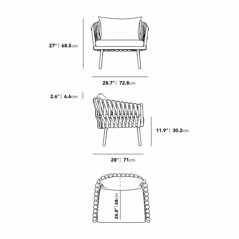 Lounge in modern style with the Pierre Outdoor Lounge Chair. Made of textured rope weave wrapped around an aluminum frame, the Pierre adds character and sophistication to any space. Featuring eye-catching details and a comfortable wide seat, the Pierre Outdoor Lounge Chair is perfect for unwinding on warm summer nights.