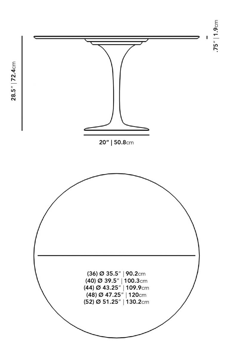The Tulip Table series is a premium reproduction line inspired by Finnish and American mid-century architecture, a period vastly characterised by the simplification of everyday living. Smooth marble sits atop a glossy white base for a sophisticated profile that is instantly recognizable. The unique single pedestal base is made from strong cast aluminum to support a heavy marble top whilst eliminating the unnecessary clutter of legs underneath.