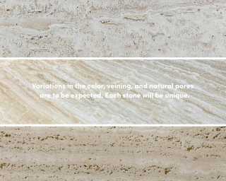 Unlike any other, travertine is a natural sedimentary stone with a beautiful variation. Due to the natural material variation in the color, veining, texture, and natural holes are to be expected.